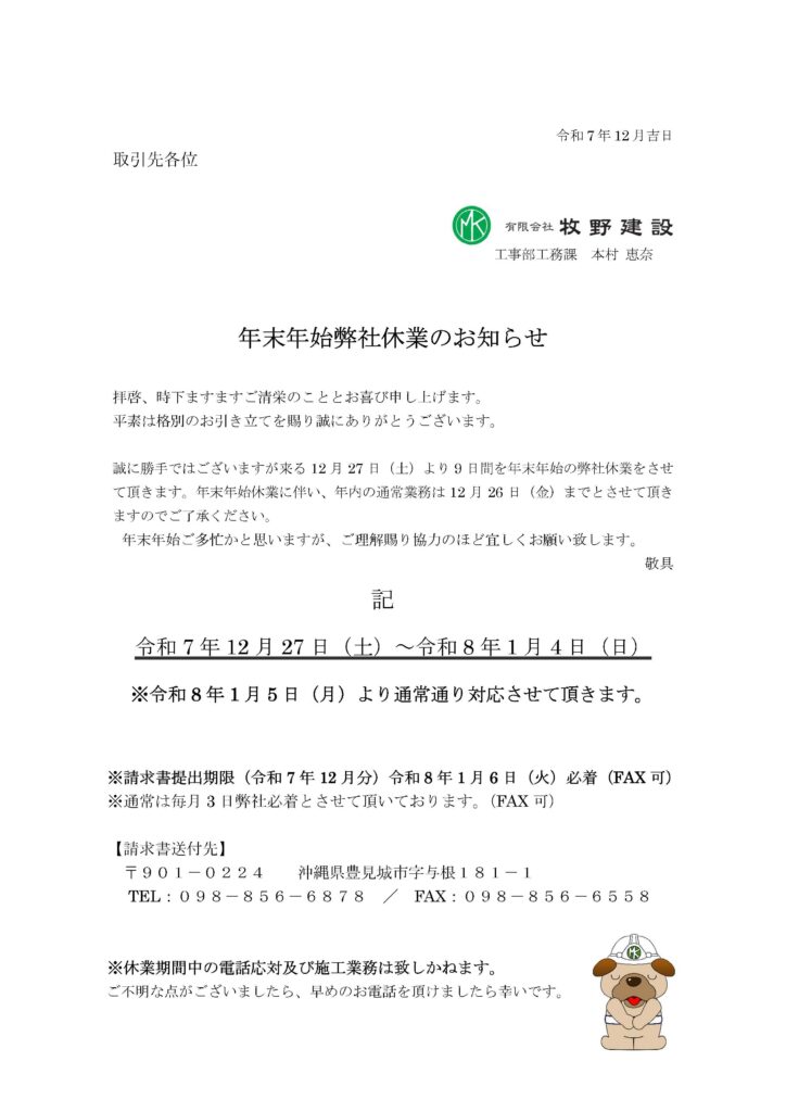 【年末年始休業のお知らせ】