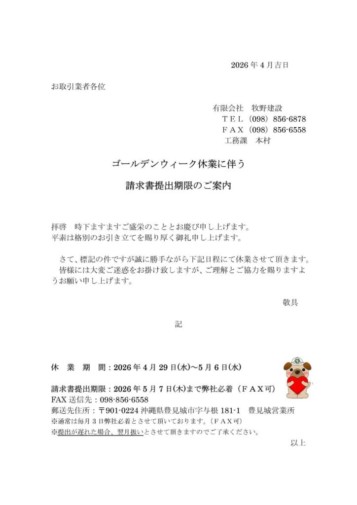 ゴールデンウィーク休業のお知らせ